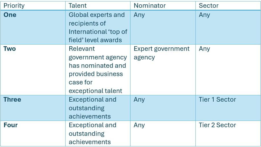 Priority four | Candidates with exceptional and outstanding achievements in a Tier Two sector: